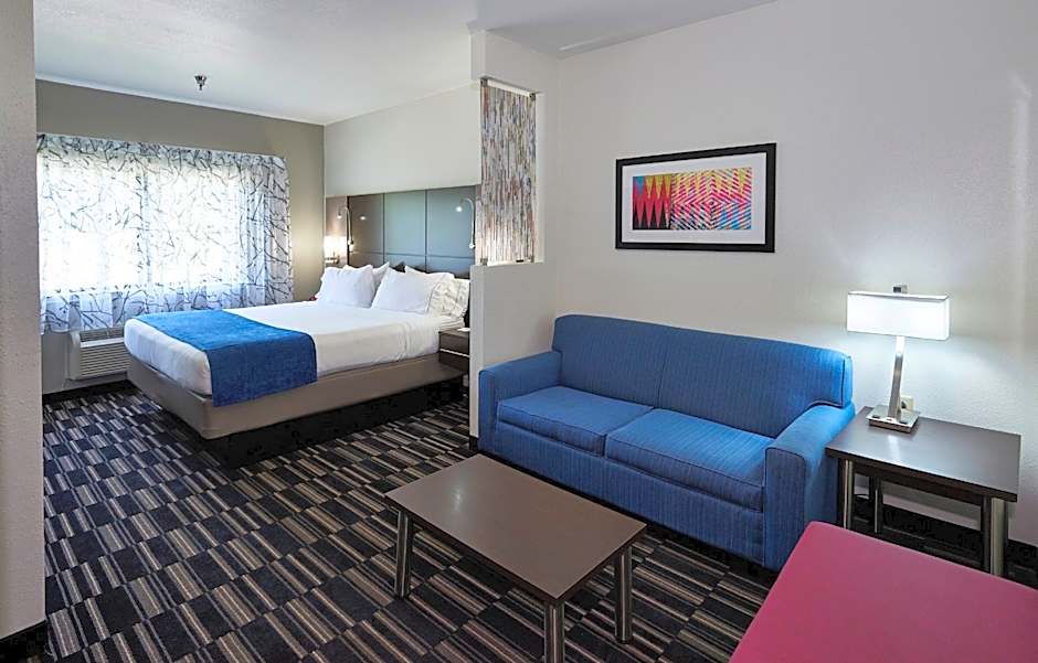 This suite includes a microwave, small refrigerator, and seating area with sofa bed.